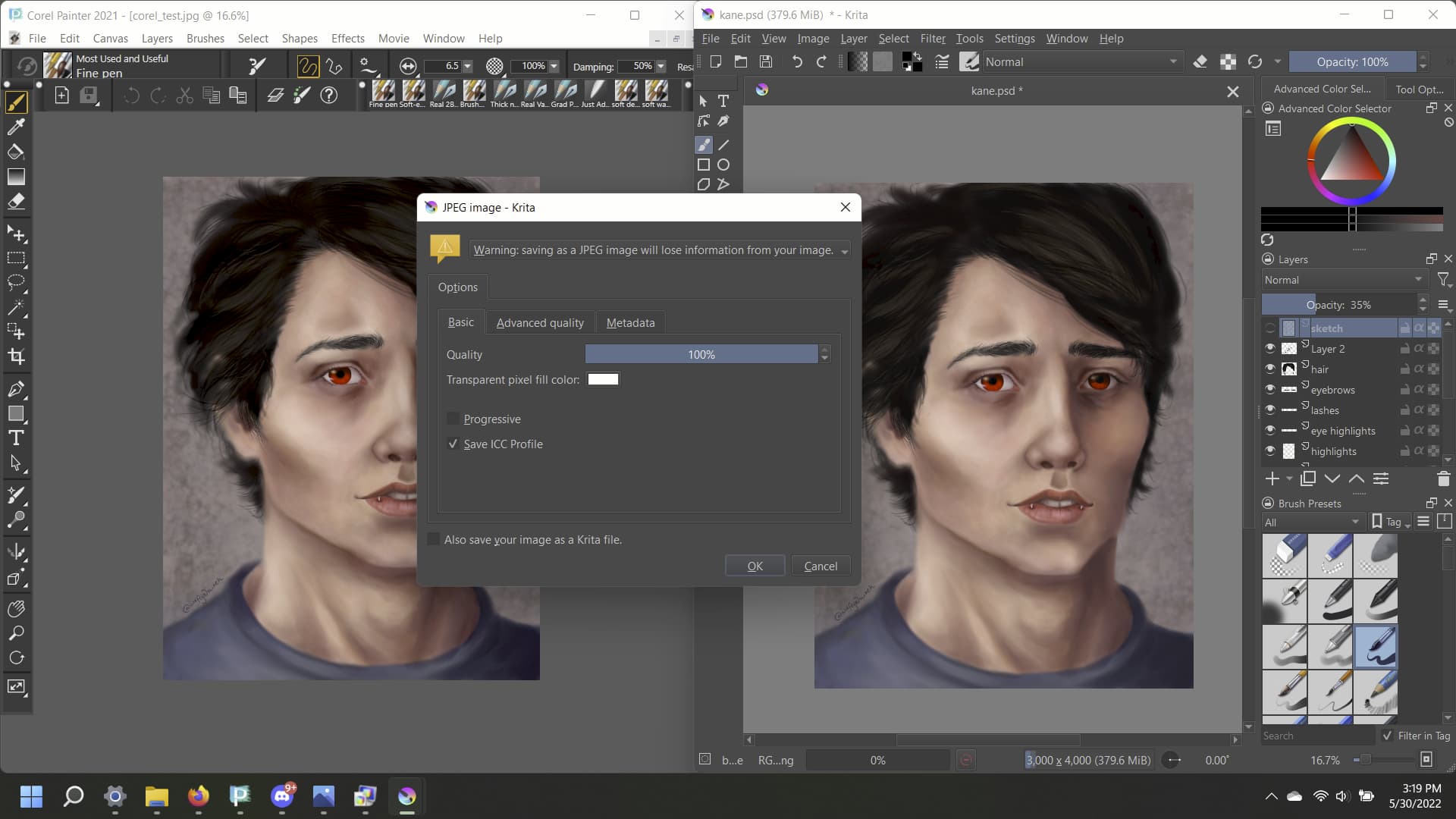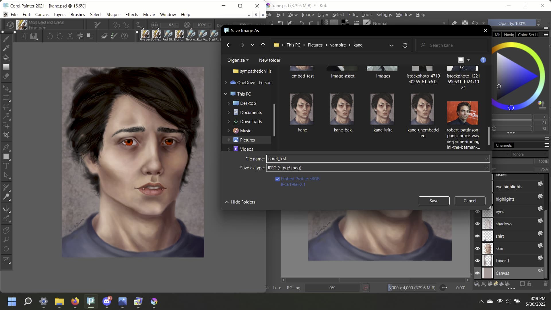 So by your testing and screenshot saving a .jpeg or .png, with the color profile embedded will have the same effect as the .psd. Opening in an image viewer or web browser will have a different saturation in comparison to open it in Krita.