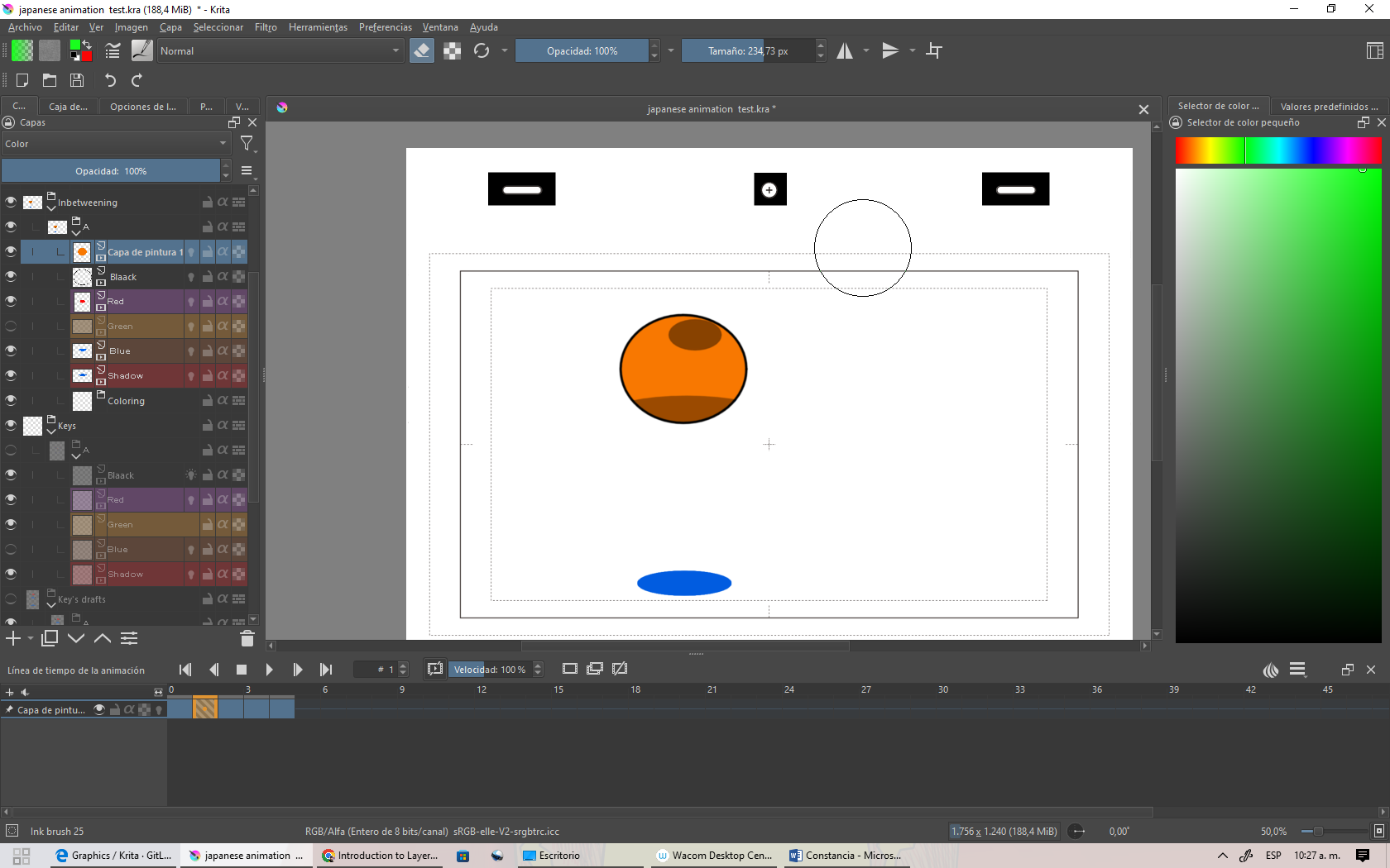 Hi, I’m Diego morales and I am trying to color my 2d animation in the Japanese animation template, following Krita’s manual instructions.