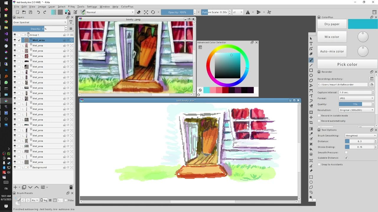 Basically, with this plugin, strokes “merge together” instead of overlapping, until you decide to “dry the paper” by pressing a shortcut (default is D) .