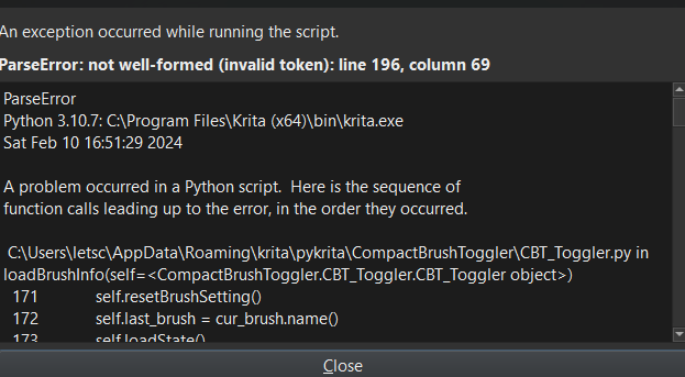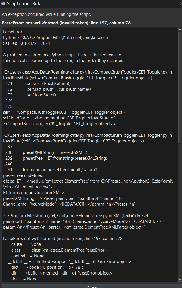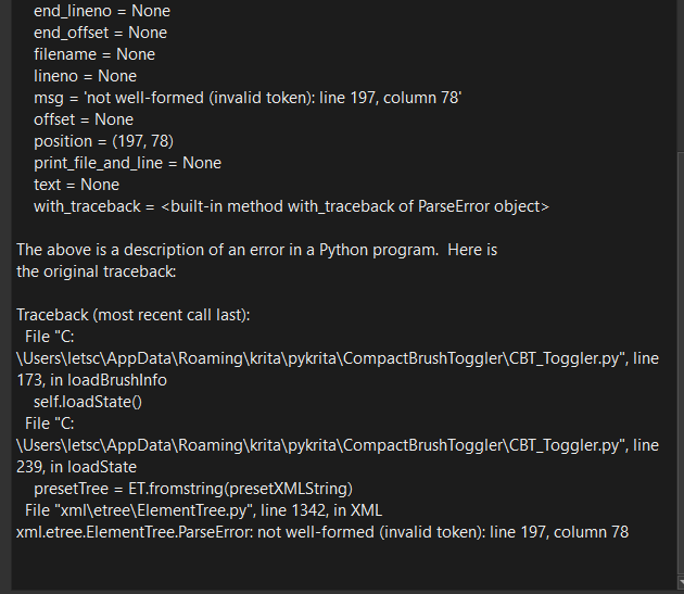 File "C:\Users\USER\AppData\Roaming\krita\pykrita\CompactBrushToggler\CBT_Toggler.py", line 170, in loadBrushInfo