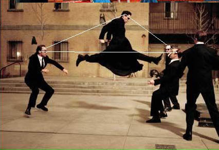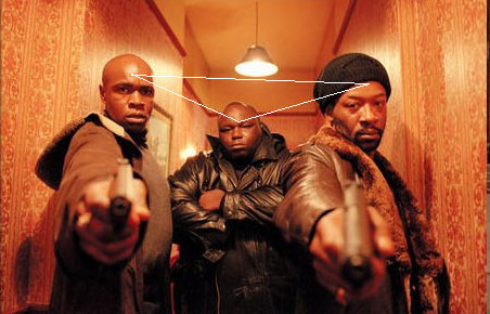 On several sites I visited dealing with composition in art or photography, the authors also resorted to examples using film screenshots. Something that is used a lot is the "triangle principle" (I’m not sure that’s the correct term). This is what it’s about: