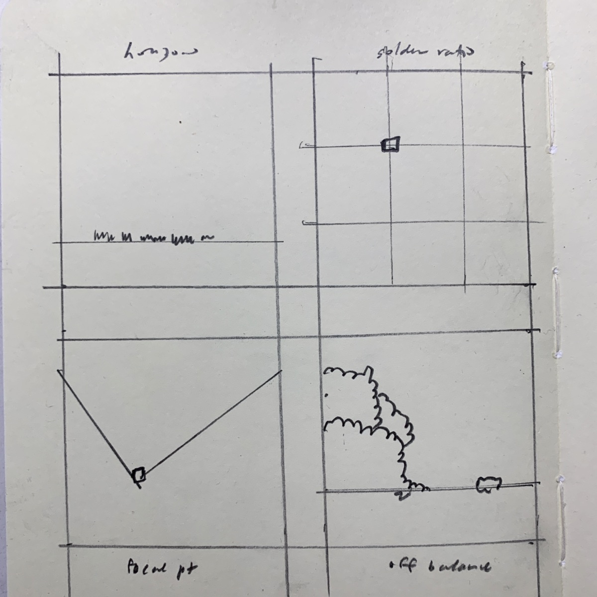 I’ve always gone with these four basic rules which are a distilled version of Edgar Payne’s, per a previous poster. Horizon (either high or low); golden ratio where the focus is on one of the four key points when a canvas in divided into thirds; focal point where a viewer’s eye is drawn into a point via angles; and off balance where the contrast between large and small focuses a viewer. On my square works, composition looks like this …