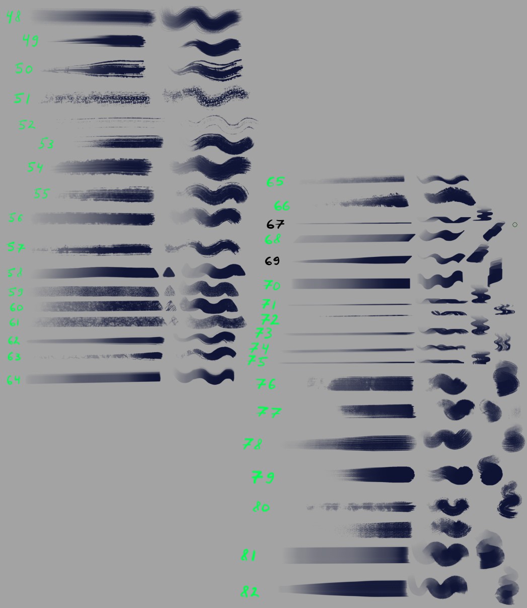 Oh, also, maybe a silly thing to mention, but: I appreciate the brush thumbnail style you’ve used here. I’m not a Photoshop user (pretty new to digital painting in general), but I find the Photoshop-esque style thumbnails bit easier to scan through at a glance. It’s more abstract (in a good way), and there’s more real estate given to the effect of a given brush instead of, say, a picture of the traditional tool it’s similar to.
