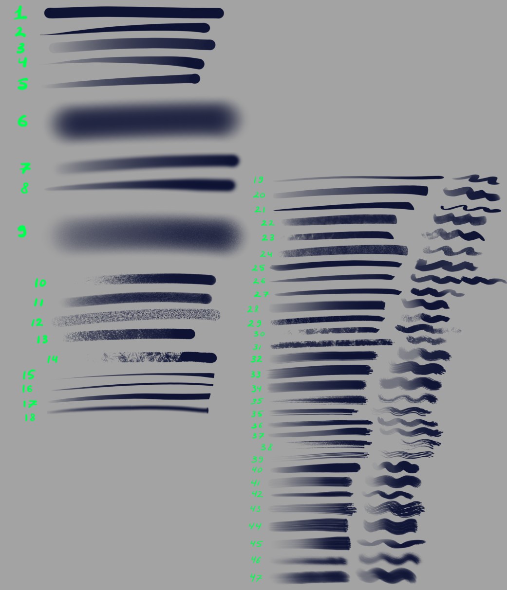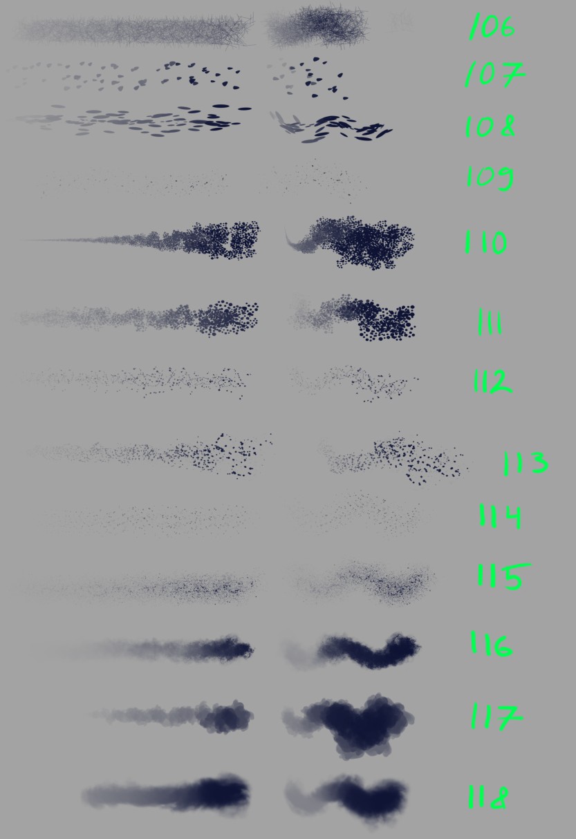 • All the brushes were remade from scratch to improve the look, feel and/or performance.