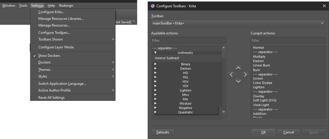 this is how you would actually think of a dropdown menu vs how krita is doing it: