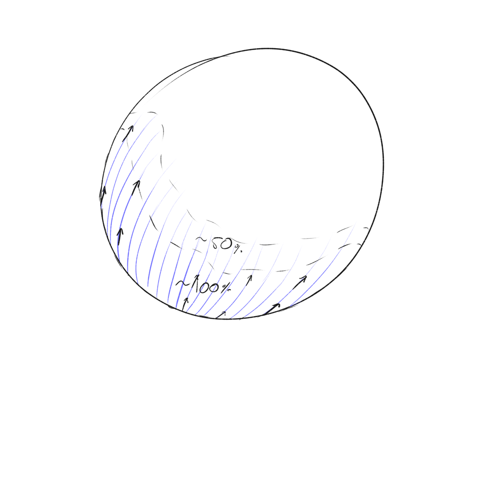 Below is a visualisation of what I mean shading a ball, with arrows indicating the direction component and dashed regions indicating the intensity component.