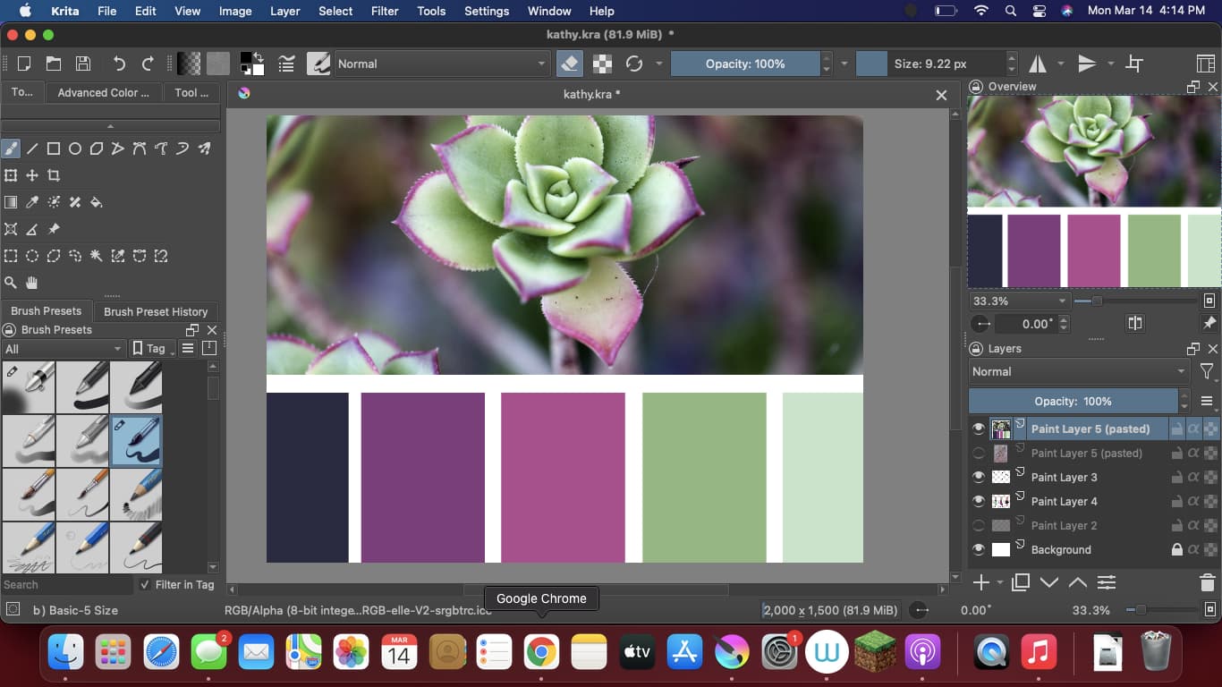 Make a colourful image in krita then take a full screen screenshot for uploading to a reply here.