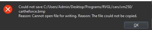 “Could not save C:/Users/Admin/Desktop/Programs/RVGL/cars/xm250/cartheforce.bmp