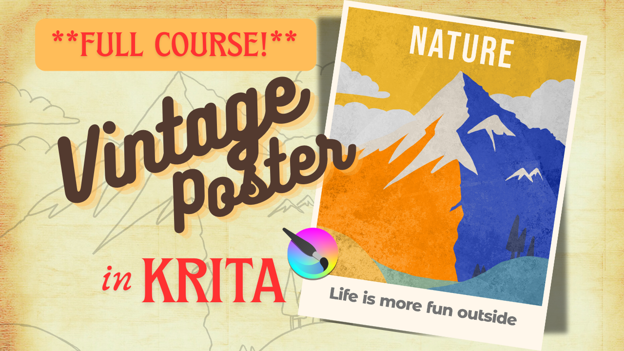 In today’s video, you’ll learn how to create a vintage poster in Krita from start to finish. This tutorial is designed like a mini course, with clear, step-by-step instructions and practical explanations. It is 37 minutes long. I’ll show you not only how to create a vintage poster, but also why each step matters. You’ll also learn how to avoid common mistakes in Krita — and how to fix them if they happen.