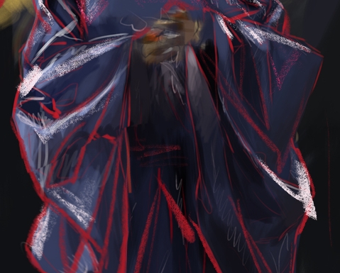 Sometimes Iāll do intermediate steps with helper colorful sketches and sharp light planning for something I find trickier like folded fabrics.