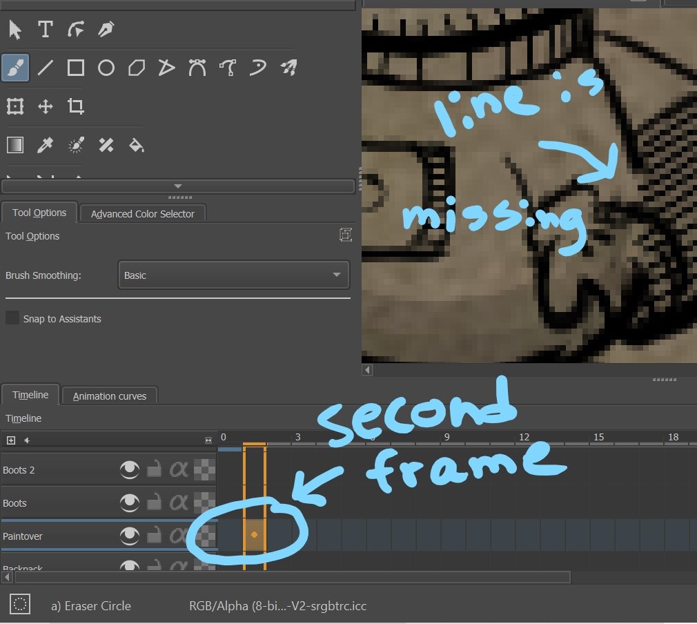 In your third posted image above, the ‘Paintover’ layer is not an animated layer, You can tell it’s not animated because it doesn’t have a lightbulb icon to the left of frame-0.