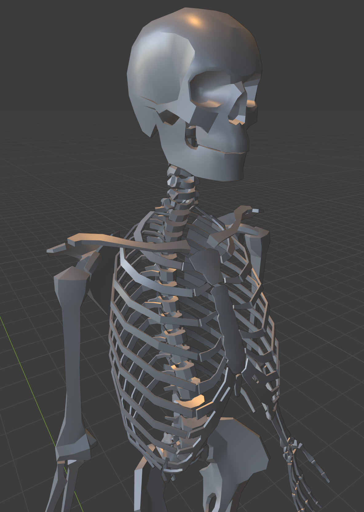 it has all the human bones on it properly separated it just needs a rig to move but it might be a bit hard to make it all move without looking super weird on the torso but I could push this into the body to use but it would mean some extra bones to twist arms and such.