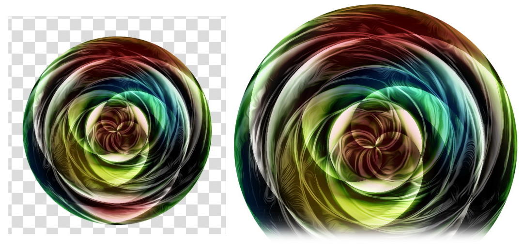 I reduced the image just to make it more obvious what will be done. As I said before, the background color doesn’t matter: anyway, the gradient will cover it. To apply the gradient, click on the center of the image (E), hold the Shift key and drag horizontally to the right, to the edge of the image. Release the mouse button and the gradient will be applied. If everything went well, your image will look like the picture on the right.