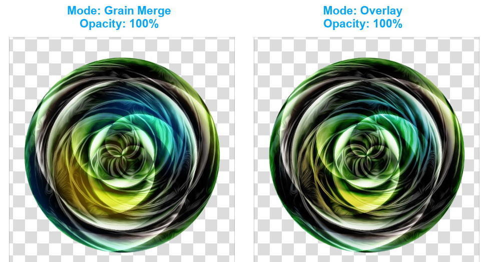 Also to match the colors with the bottom layer is your choice. You can simply reduce the opacity of the top layer, as I did in the example below on the left… or change the mode of this layer and using different opacities.