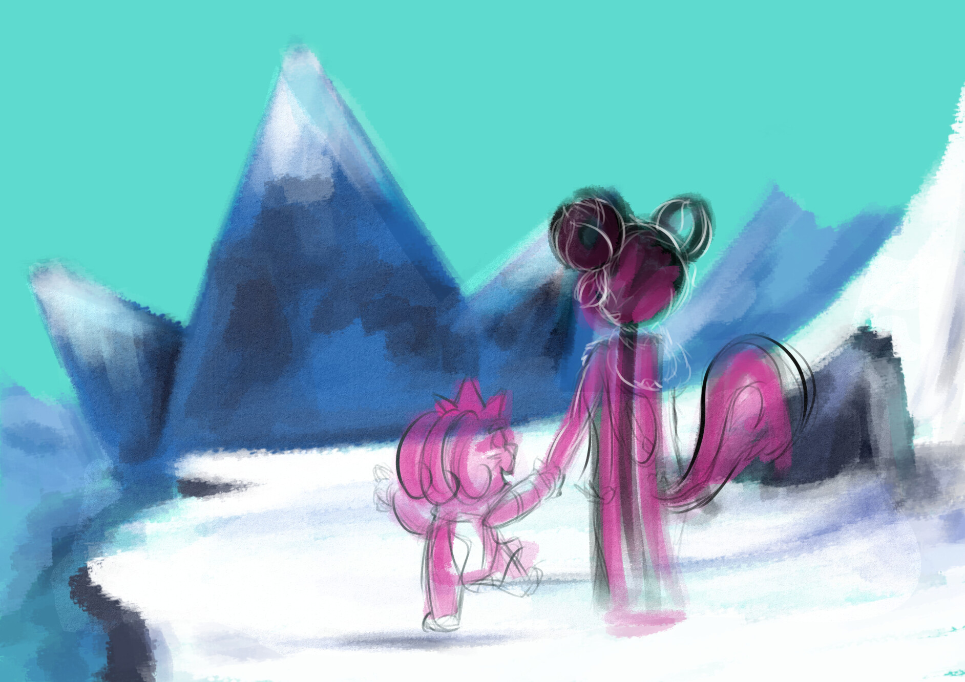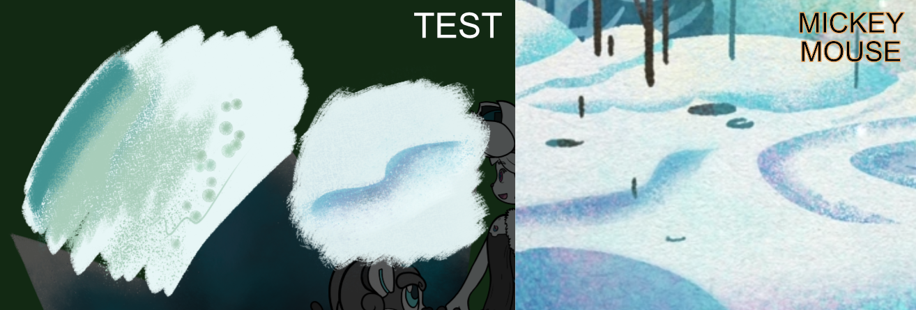 I’ve chosen winter because it’s my favourite season, but I didn’t want to draw the tipical dark and cold scene, at least not at first. A few days later of the contest start, I watched on Disney Plus the episode “Spring” of ‘Mickey Mouse Shorts’ (season 4, episode 14) and the snowy backgrounds were an inspiration for my drawing. I love the art style of that series, so as a challenge for myself I tried to replicate it.