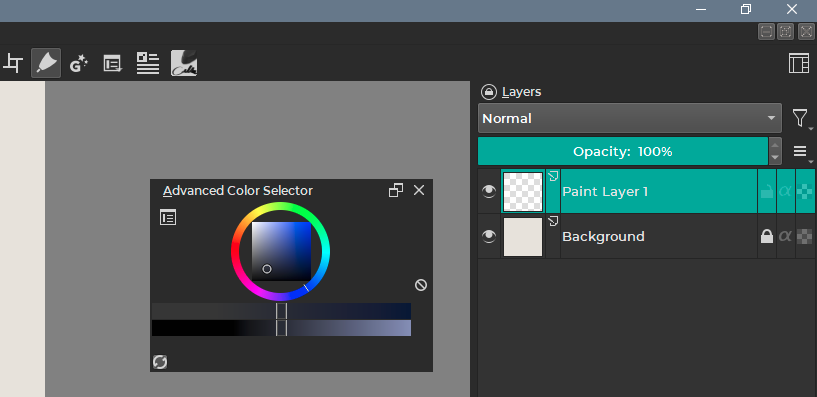 Please let me know if I need to change a setting to make it look gray on top like the rest of the UI. I attached a screenshot of mine and an image from krita website to compare the issue.