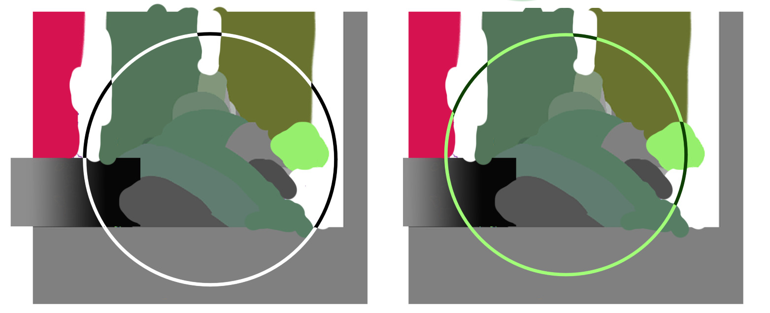 In this forum I have read requests of people to change the Brush Cursor Outline Color behavior in future versions of Krita to resemble the behavior of that in Clip Studio Paint Pro, meaning to always change color to the opposite one that the cursor outline is hovering over on the canvas.