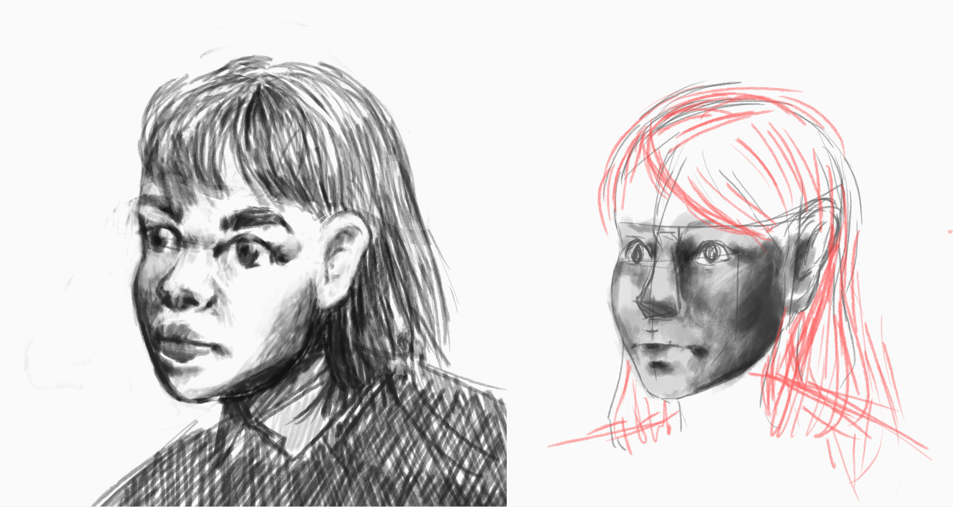 Unfortunately I throw away most of my sketches that fall in the “not good enough” category but here are two that I could find.