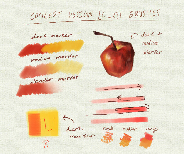 I found the medium and dark markers to be intuitive and versatile for digital painting. I’m not familiar with MyPaint’s brush engine but from my view, they behave like a smudge and pixel brush. I was able to create satisfactory edges and color mixes easily.