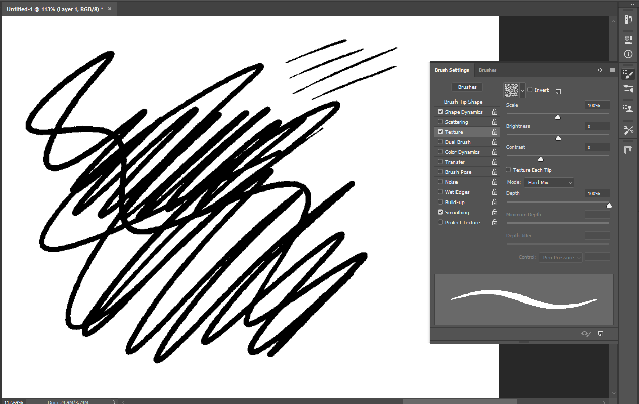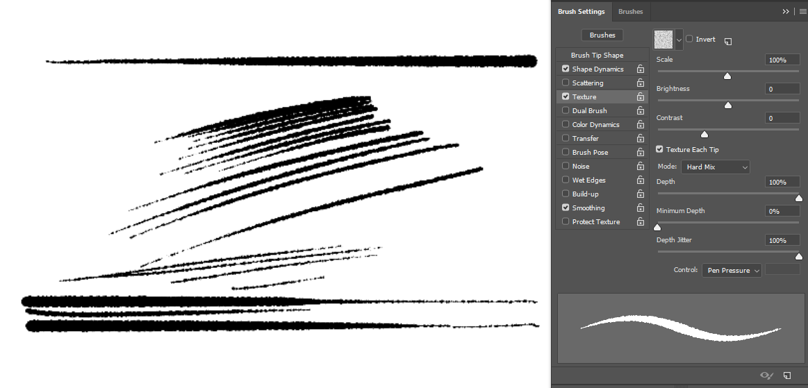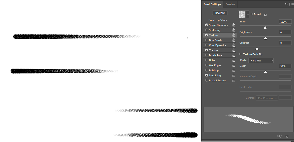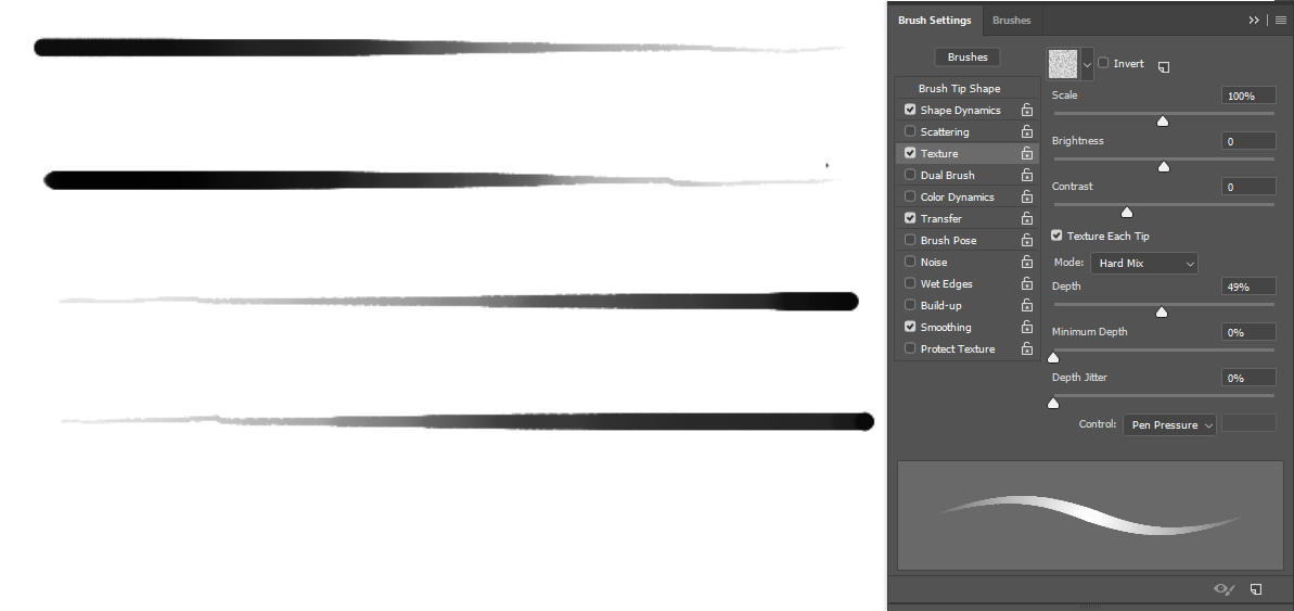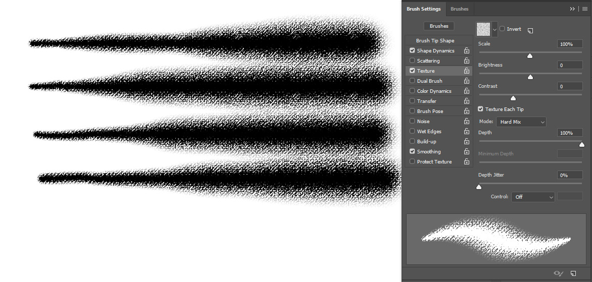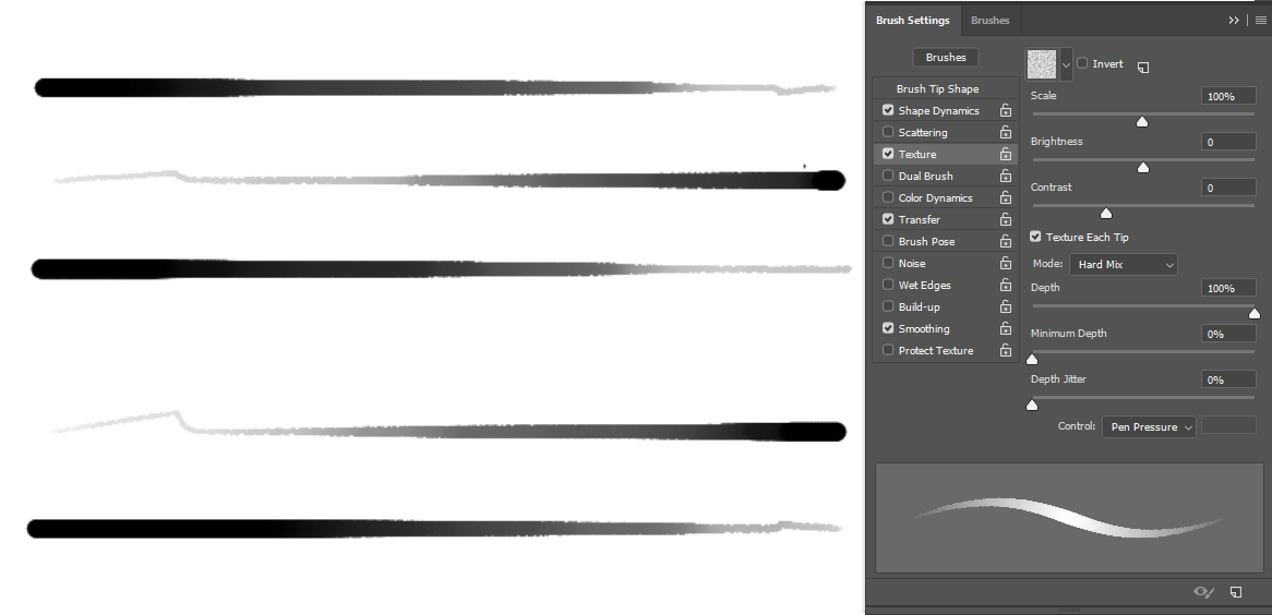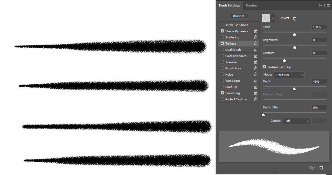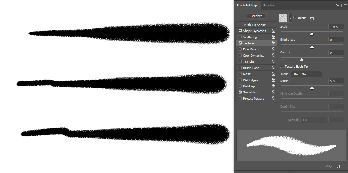 Also things like dual brush may get in the way in texture per stroke, which you don’t have to even think about in the case of texturing a single dab.