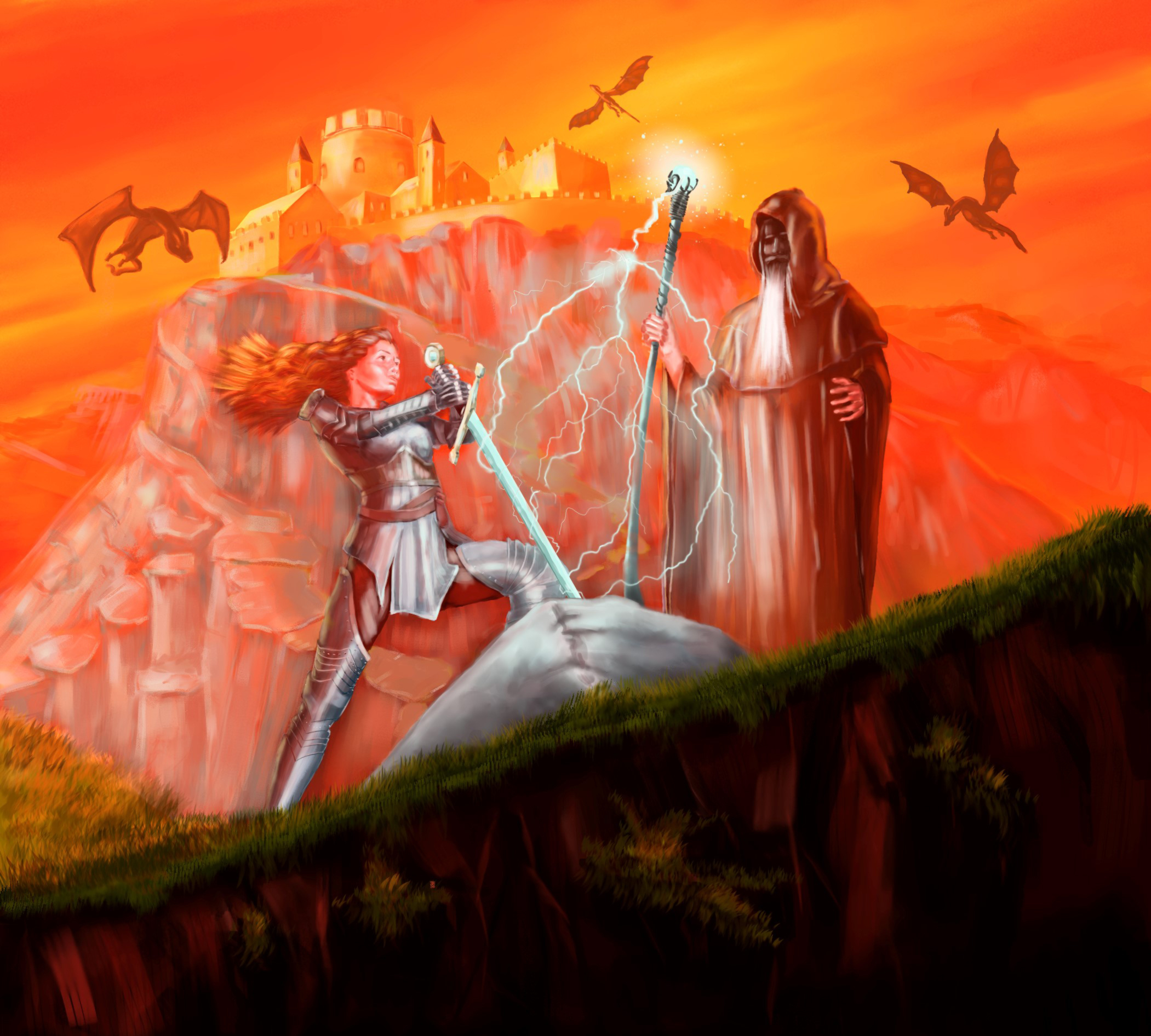 I re-imagined Camelot but instead of Arthur, I had Guinevere pull out the sword instead as Merlin watched over. I learned a lot from the process of painting it and hope to improve as I go along. I hope you enjoy the painting as much as I enjoyed painting it.