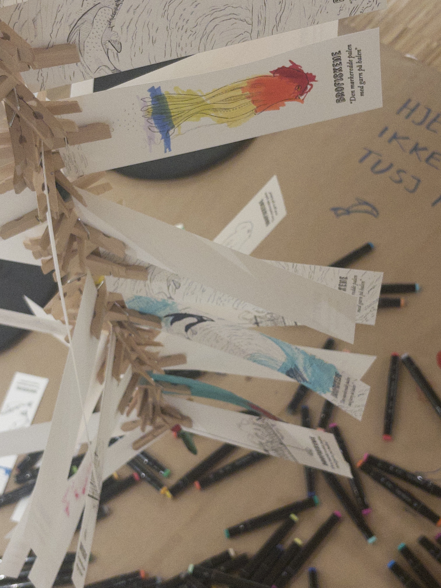 I’m also inviting visitors to join in to make a full size Orca whale on one of the walls, and to paint their own bookmarks. Krita also allowed me to have a timelapse video of artworks playing on an interactive screen in the gallery.