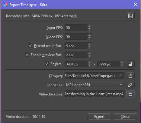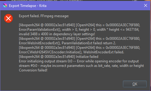 I’d like some help with exporting my krita timelapse recording. Exporting works for me the last time. But now it doesn’t.