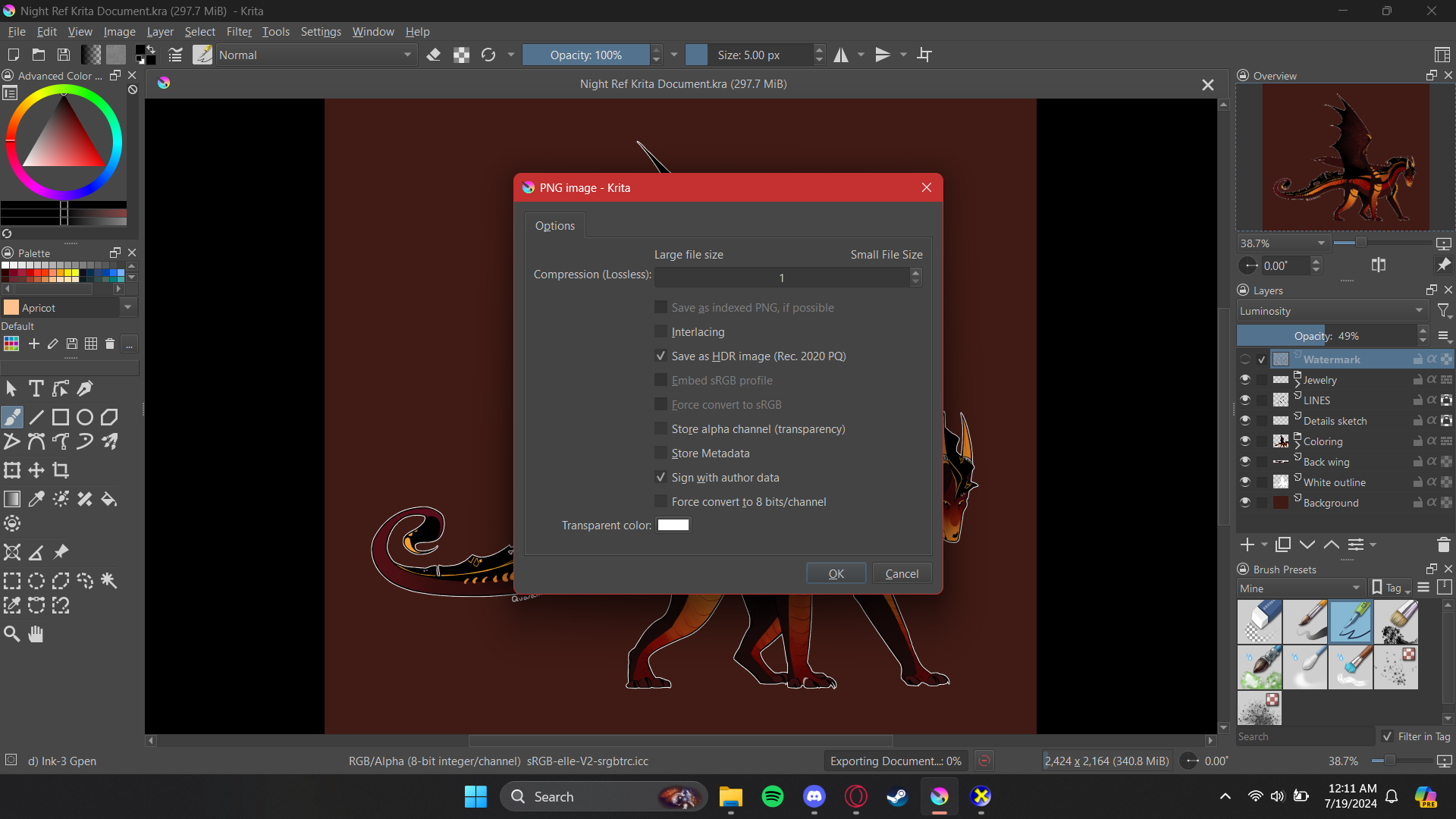 I’ve only just recently started using Krita, and made a new ref sheet for one of my characters. This was the first thing I wanted to export and share from the program, but after exporting it as a PNG, sharing it through Discord made the colors desaturate. The thumbnail in my files and before it sends in Discord are correct, but once it goes through, this problem occurs.