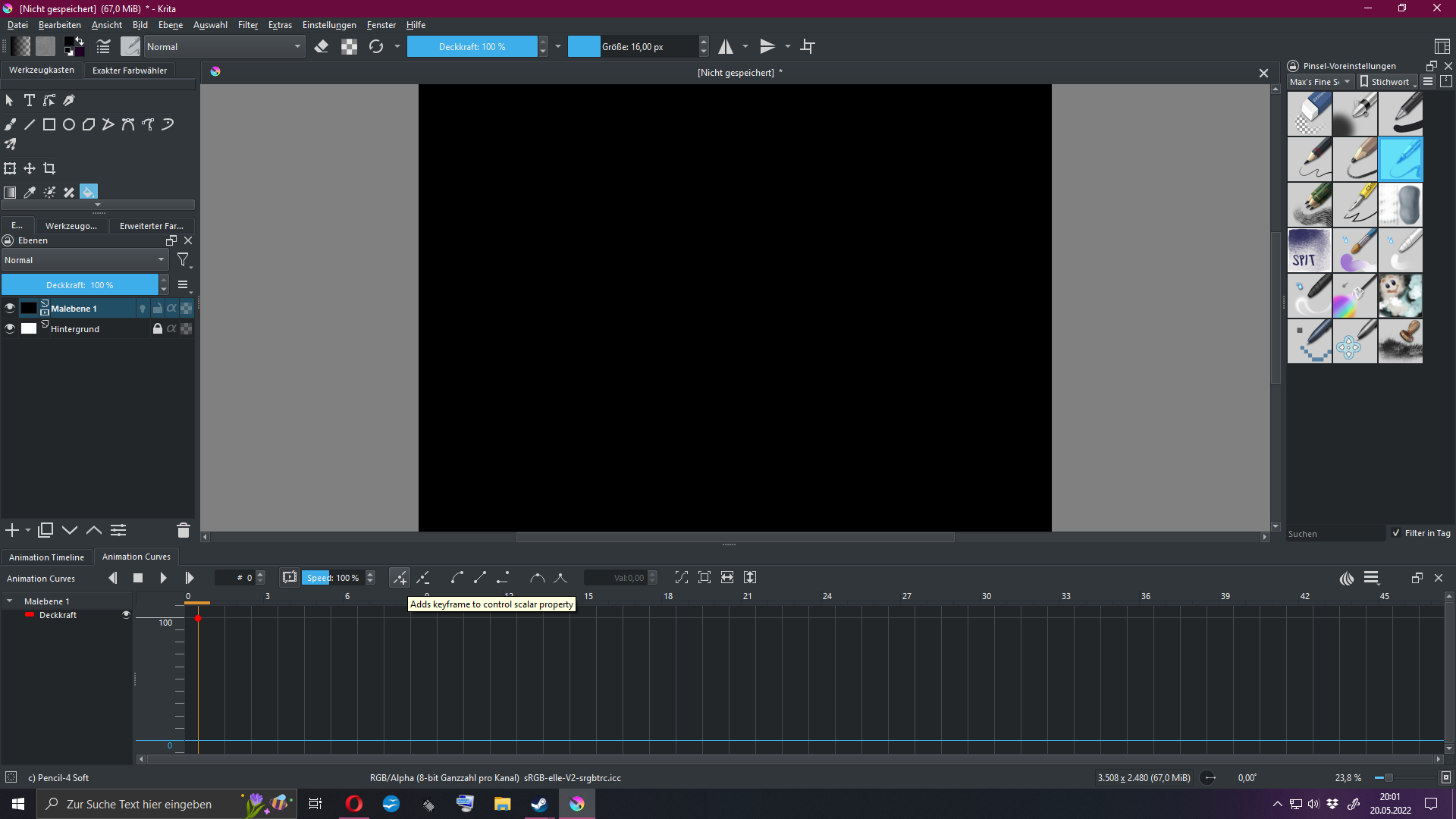 Then choose the Animation Curves docker and simply press the “add keyframe to control scalar property” button (line with a plus as the icon)