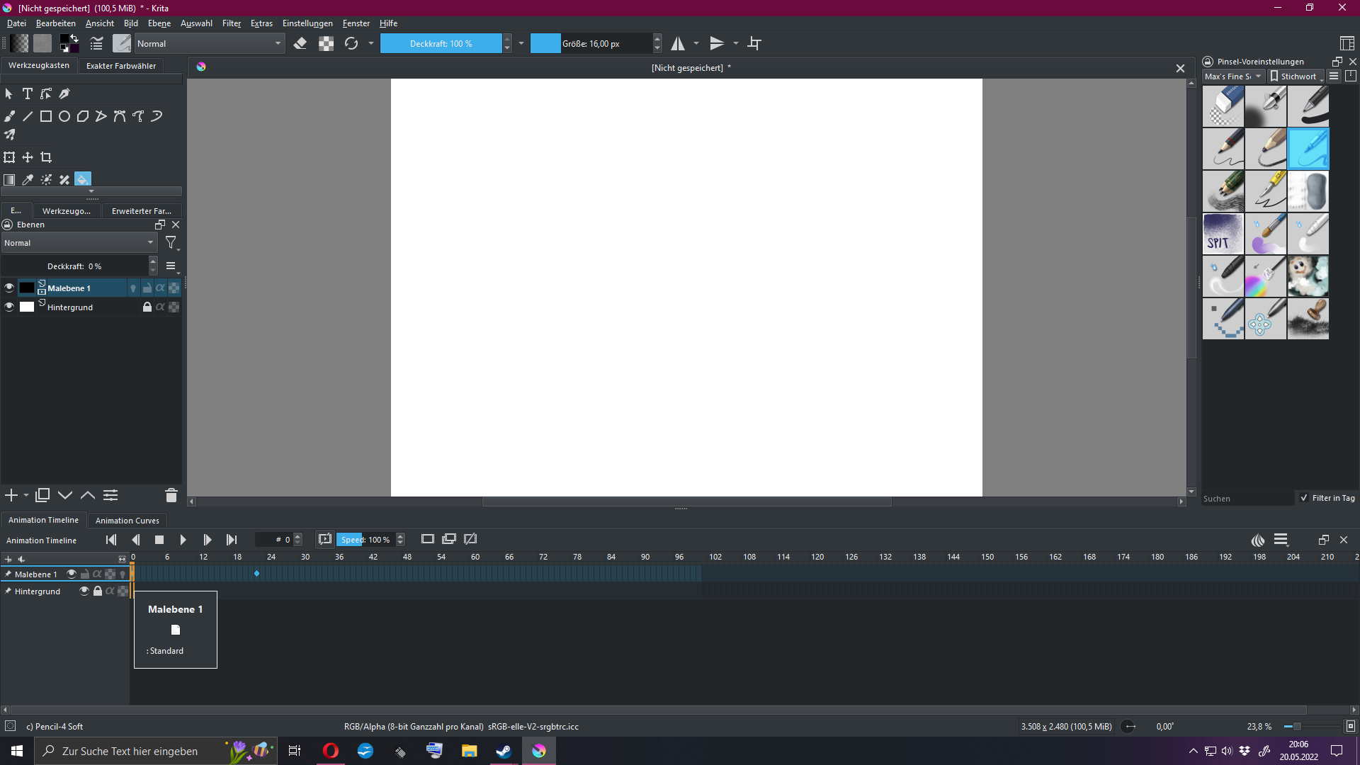 First off you need to create an animation workspace. For that you have to atleast add the “Animation Timeline” and “Animation Curves” dockers.
