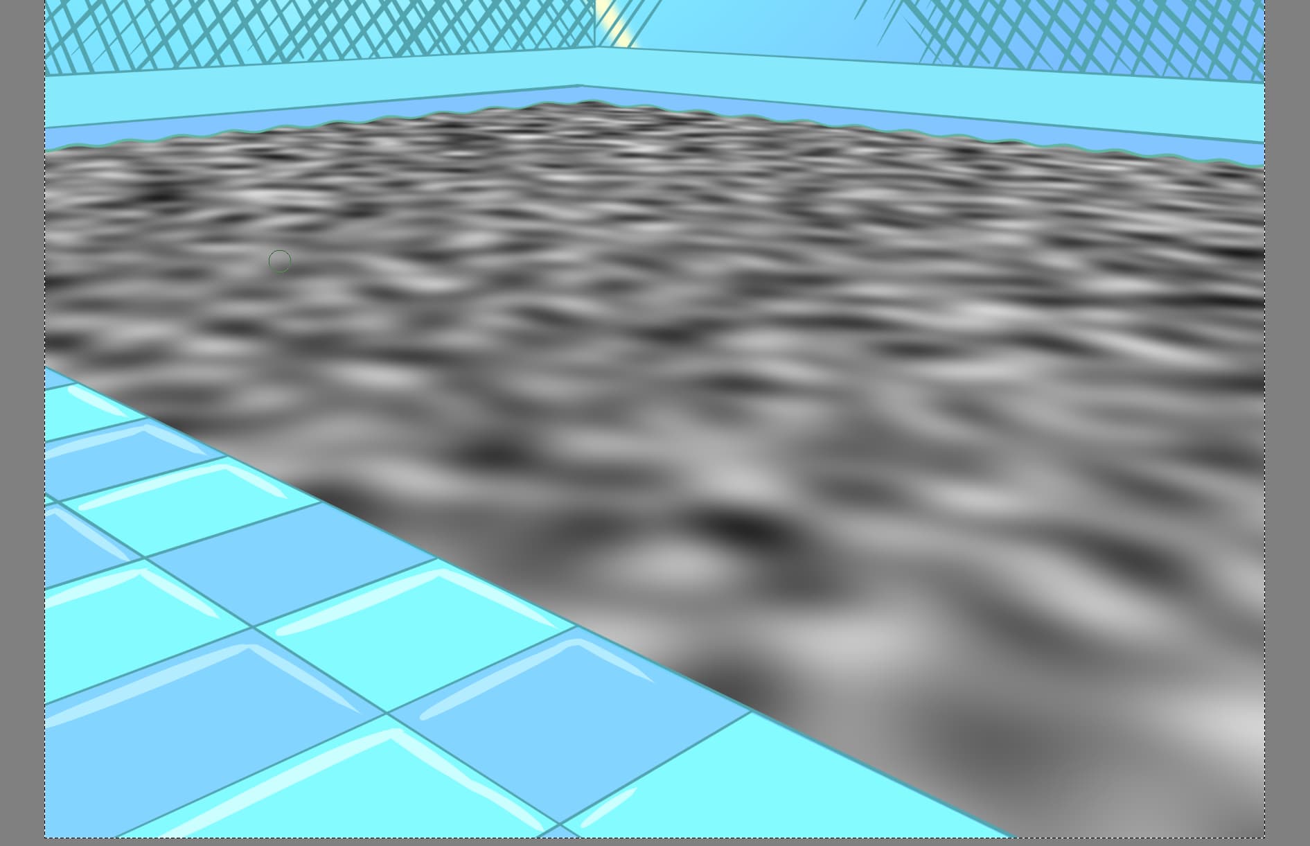 For the water, I just drew a rectangle in perspective and distorted it using the wave filter.
