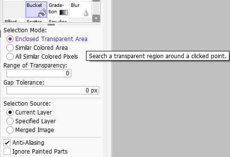 Looking at the options provided by sai, it uses transparency to identify the range (provides a threshold for adjusting the range of recognition transparency), and provides fill anti-aliasing (fill anti-aliasing is enabled by default).