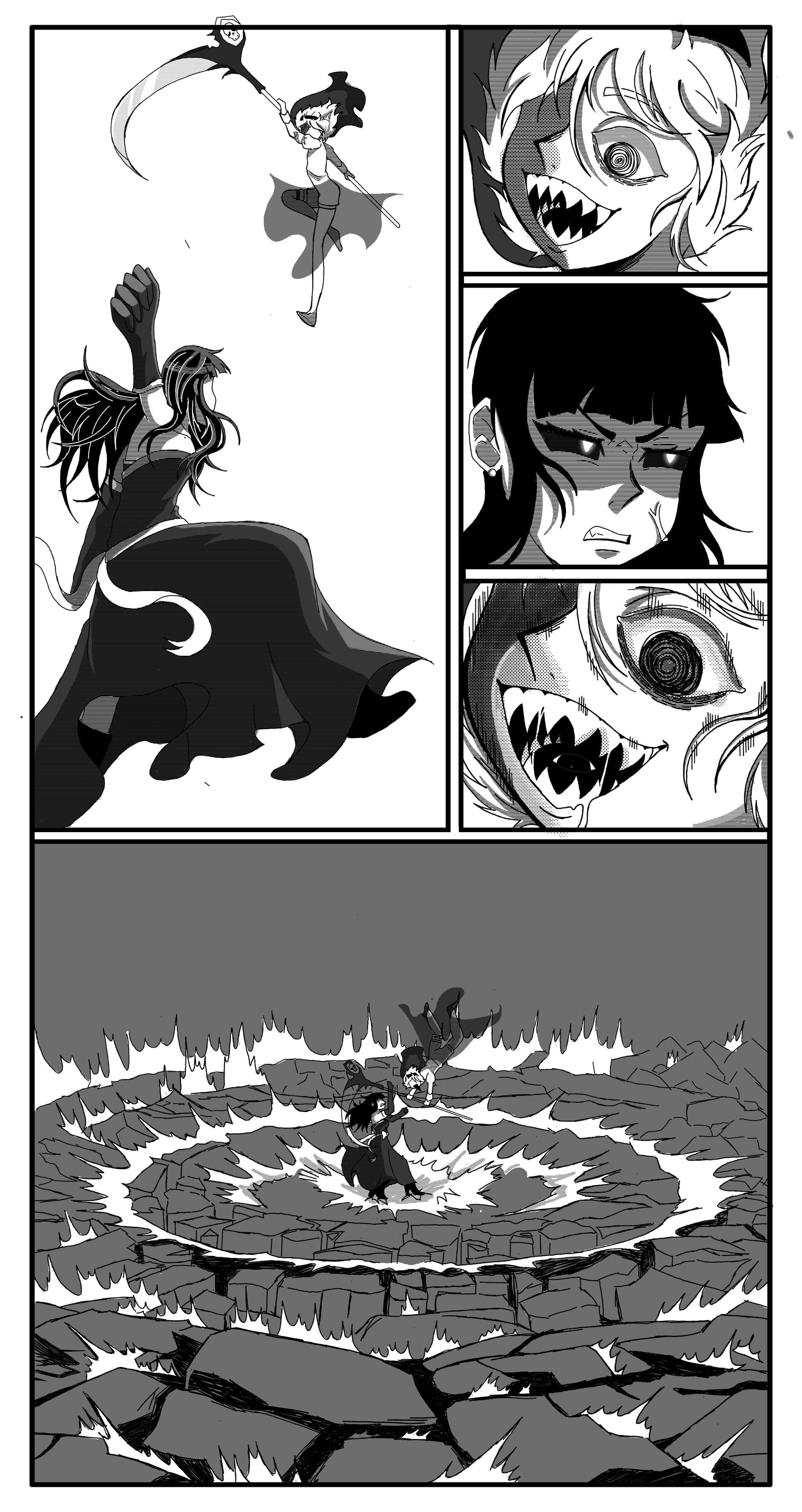 I can see that. Also, my influence for this was literally a dream. Like, “Hey, Cool fight scene in mind” I wake up and I want to draw it.