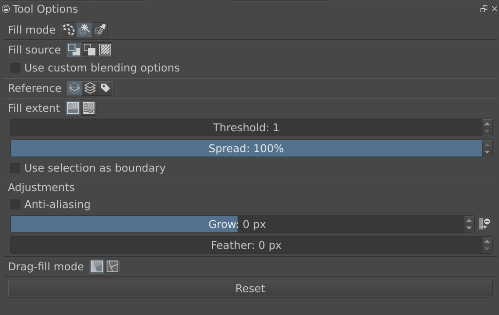 Please show a screenshot with the fill tool options.