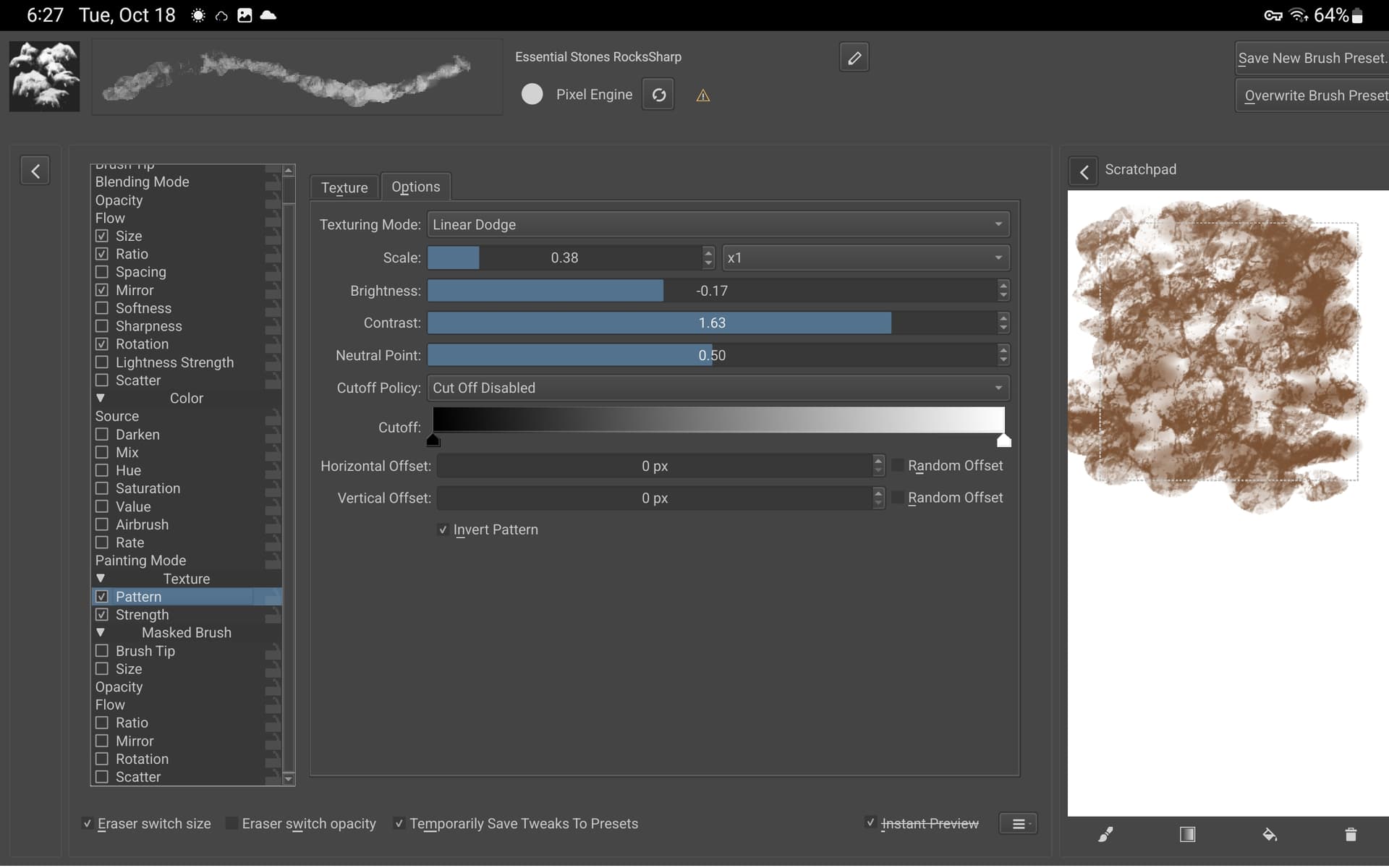 @CrazyCatBird WIth a freshly imported bundle, I see a different problem with the ‘Essential Stones RocksSharp’ brush preset.