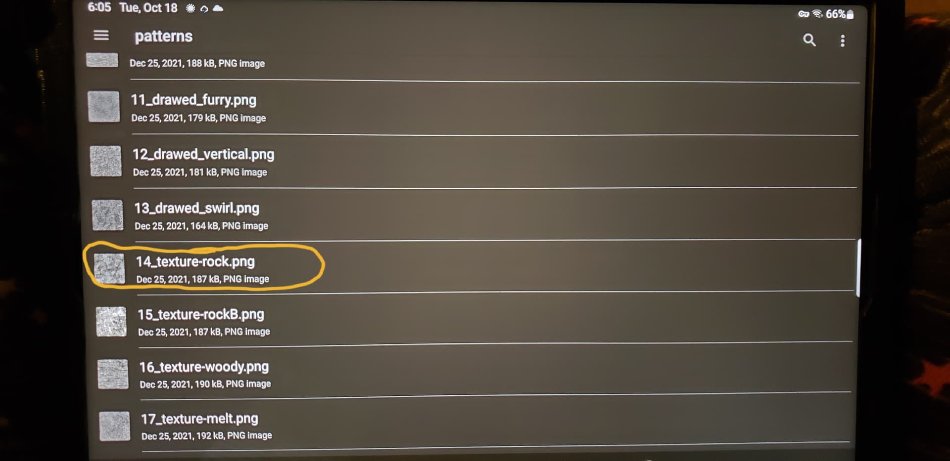 If it exists in your installation, then it has to be in the folder “patterns” of your resources-folder, it is not in “brushes”. And if you have not deleted it from Krita’s installation-folders (not the resource-folder) it will be restored every time you start Krita. For the uninformed, it is not obvious where Krita has its default resources to restore when needed. And I don’t know if you have access to Krita’s installation-folders under Android.