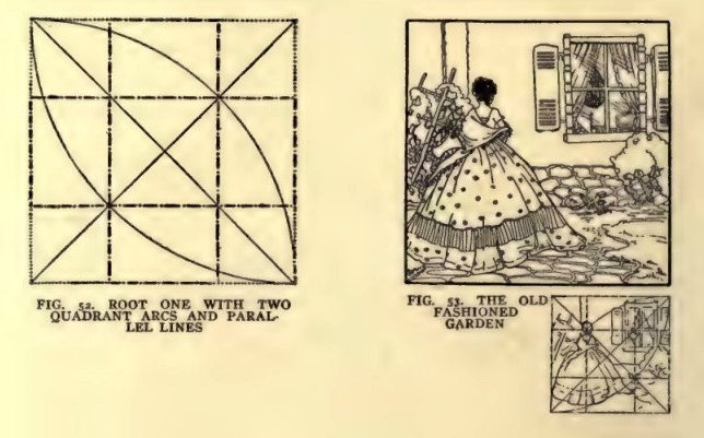 This book seems to be more about perspective in geometric design. A cool technique shown in it is building letters in perspective (below left). On the right are illustrated the stages of drawing a boat, in perspective. Note that the author first drew a general outline of the vessel, to facilitate the task… and only then added the final lines and details: