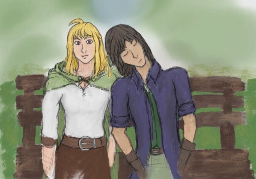 Anyway, this is a (WIP) sketch/drawing of my character accidentally dozing off on the shoulder of a friend’s character. Ironically I’m only posting it because I can’t sleep. (Ignore the lower part of the image, obviously I haven’t given them hands, etc)