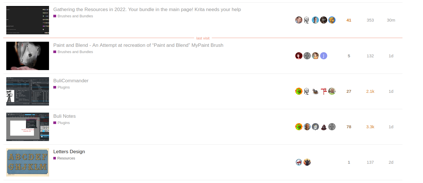 Before any creation of a usefull library, i was thinking that a direct link on the homepage of Krita to the “Resource” forum could be a nice start.