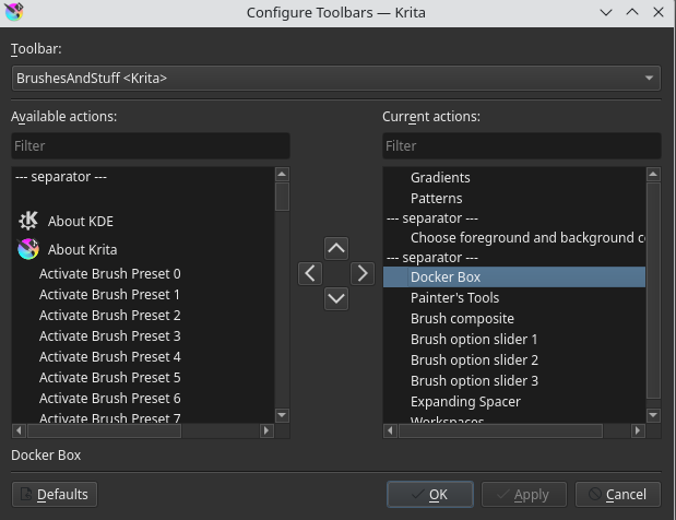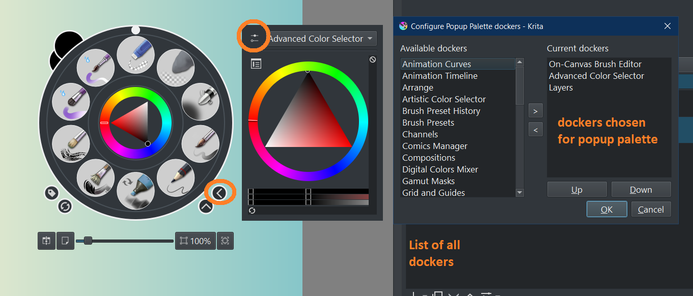 But in that one there seems to be no setting for the popup palette to enable the “show docker” feature (Krita - Settings - Configure Krita - Pop-up Palette)