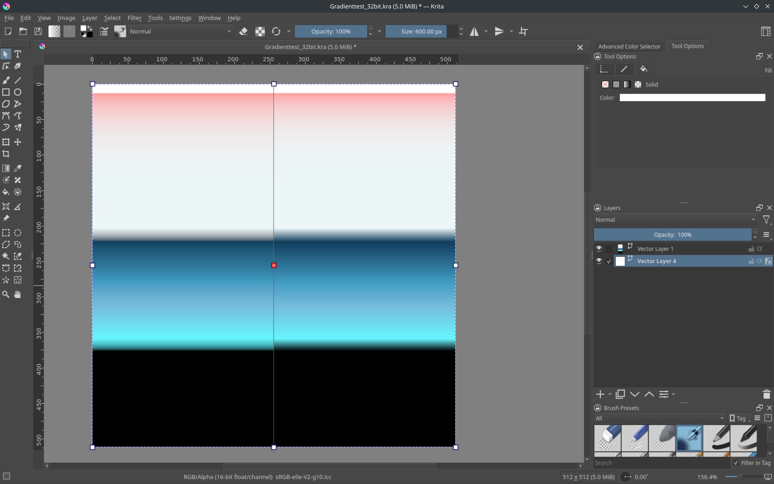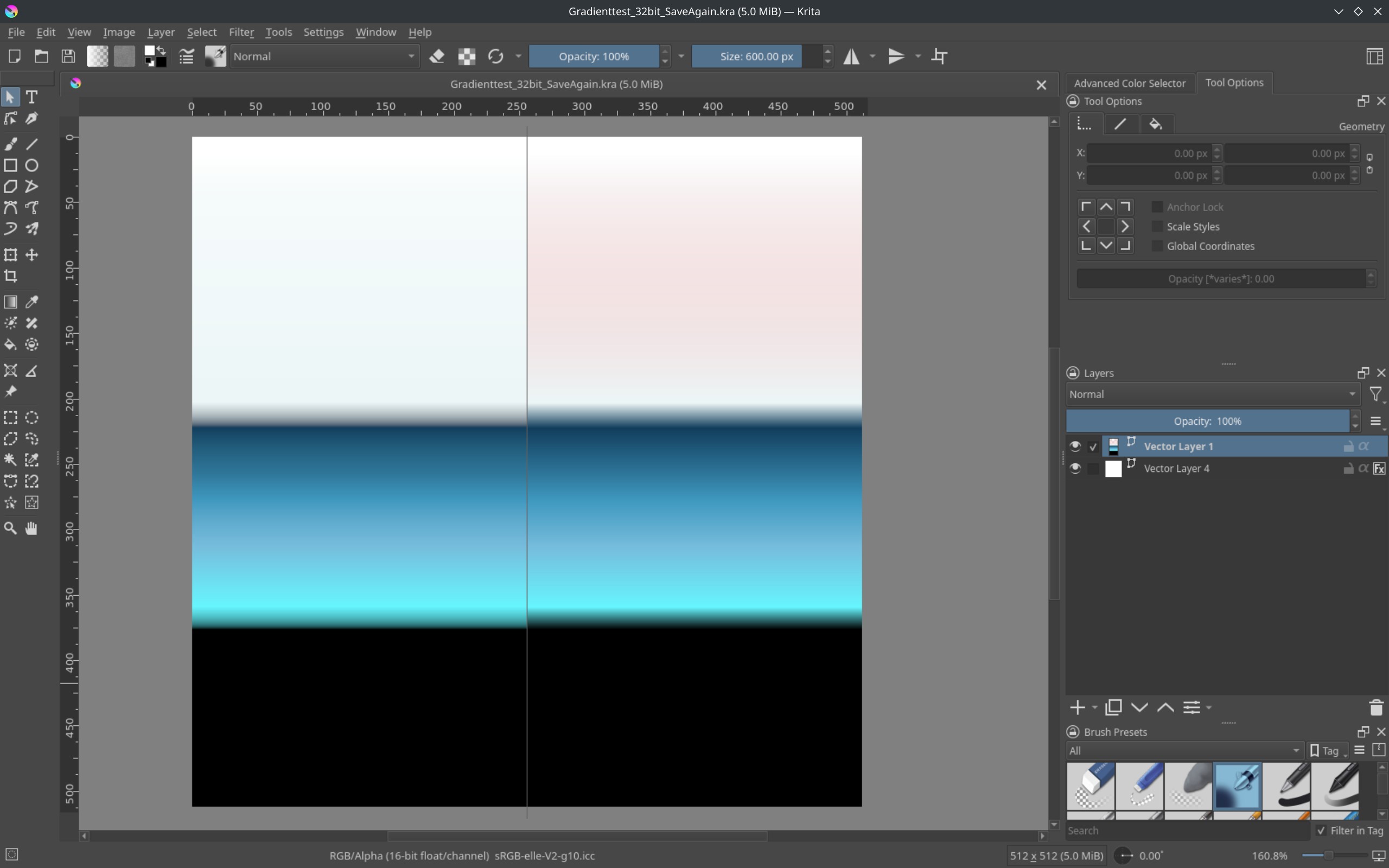 Gradients in Krita duplicate, alter, and display incorrectly after reopening a .kra file.