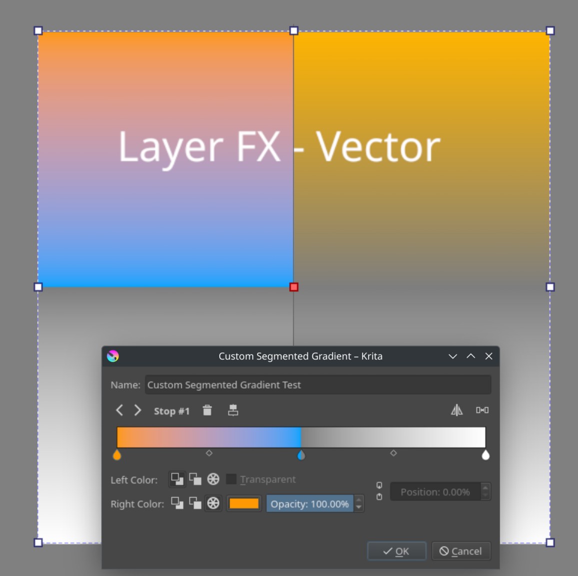 One more detail. It seems, it is the “Segmented Gradient” type that is affected and only if vectors are used. Contrary to what I thought first, it is not related to the opacity but to left color vs. right color in general, even if they are set to 100% opacity.