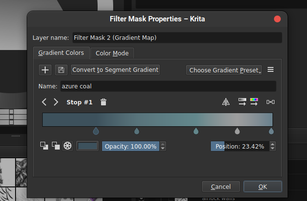 this is an example of what happens, here is the “corrupted” version , note that this issue dosent happens constantly to every gradient preset i made, but keep happening often enough i have to troubleshoot and recreate gradients almost every day for that reason.