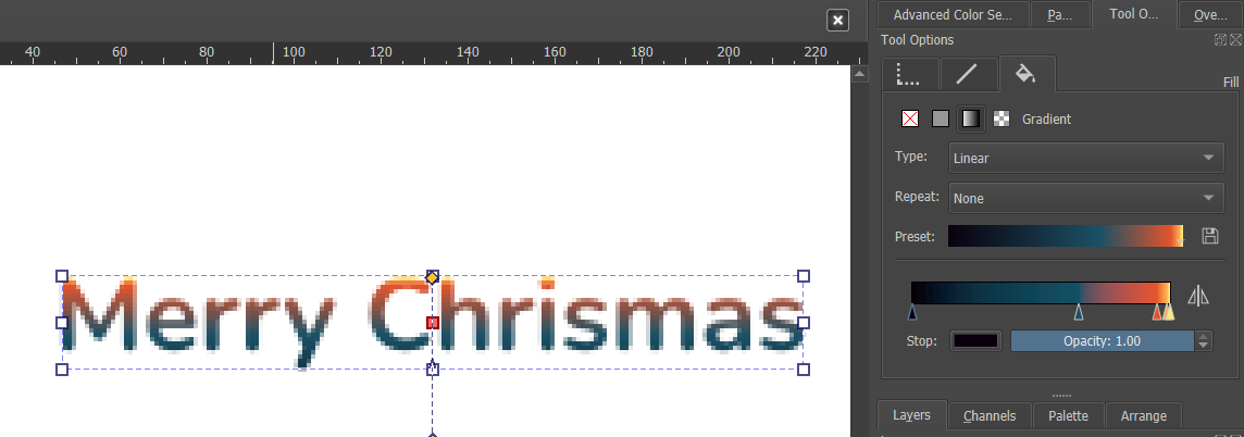 Brand new to this entire world. I’m working on Christmas gifts and want to type and/or write in the program and gradient the colors of the word. Example: Merry Christmas that goes from red to green color across all the letters.