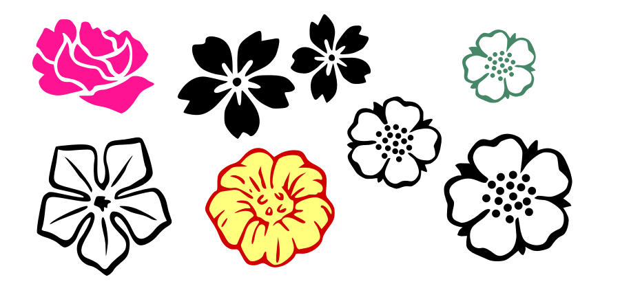 • Flowers - Stylized flowers. Some of the flowers are made up of two or more elements, allowing you to apply different colors to them. Five vectors: