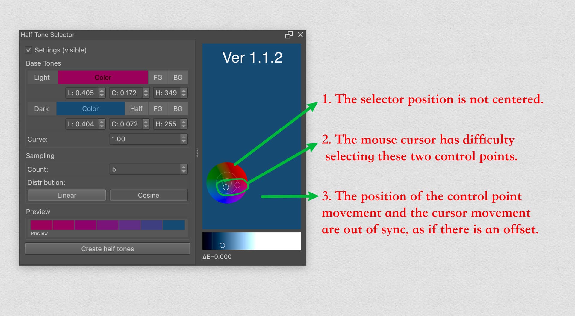 Thirdly, when I drag the control points of the foreground or background colors to change their positions, there is a delay and the cursor position is out of sync.