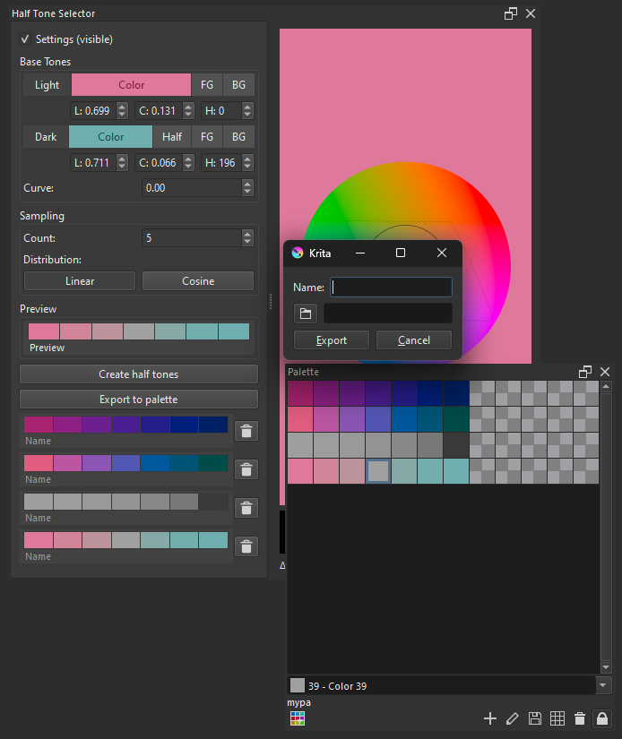 Hi, I’m sharing to encourage you and tell you that I’m using your plugin a lot. Also at the moment it would be super convenient for me if the chosen colours could be exported automatically to a colour palette file.