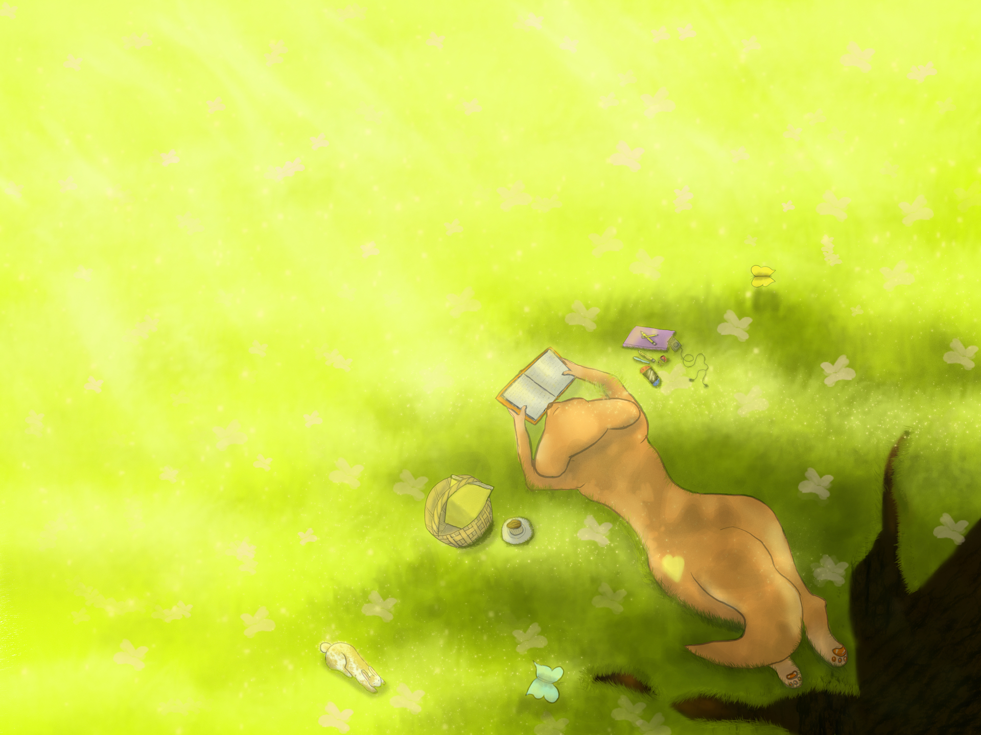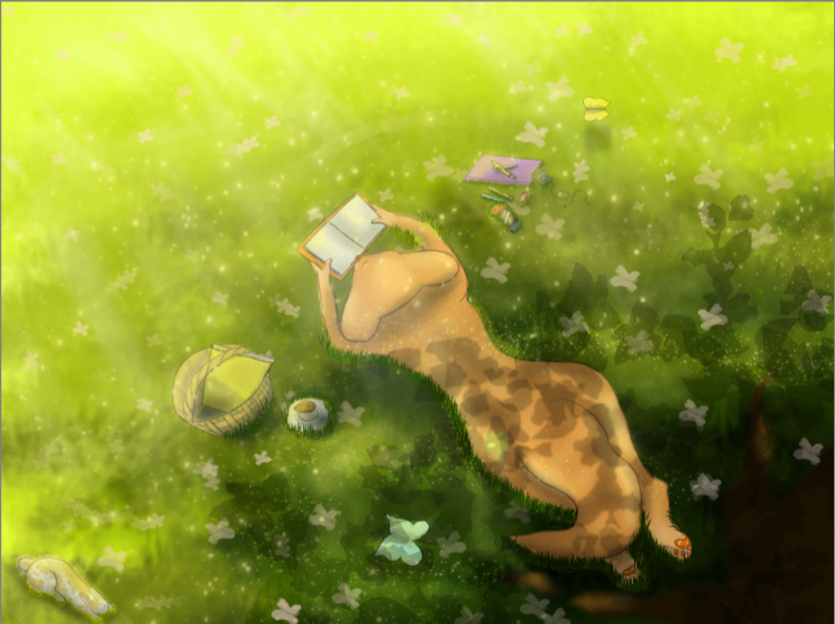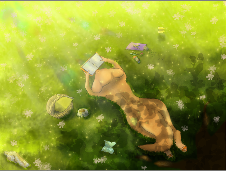 Hi Phae, i don’t know if it’s gonna help but i think you choose a difficult camera angle for your piece i would done it a bit different like a profile view to see the face of the fox reading the book and to see the light better, so that way you could animate the butterflies and some rim light