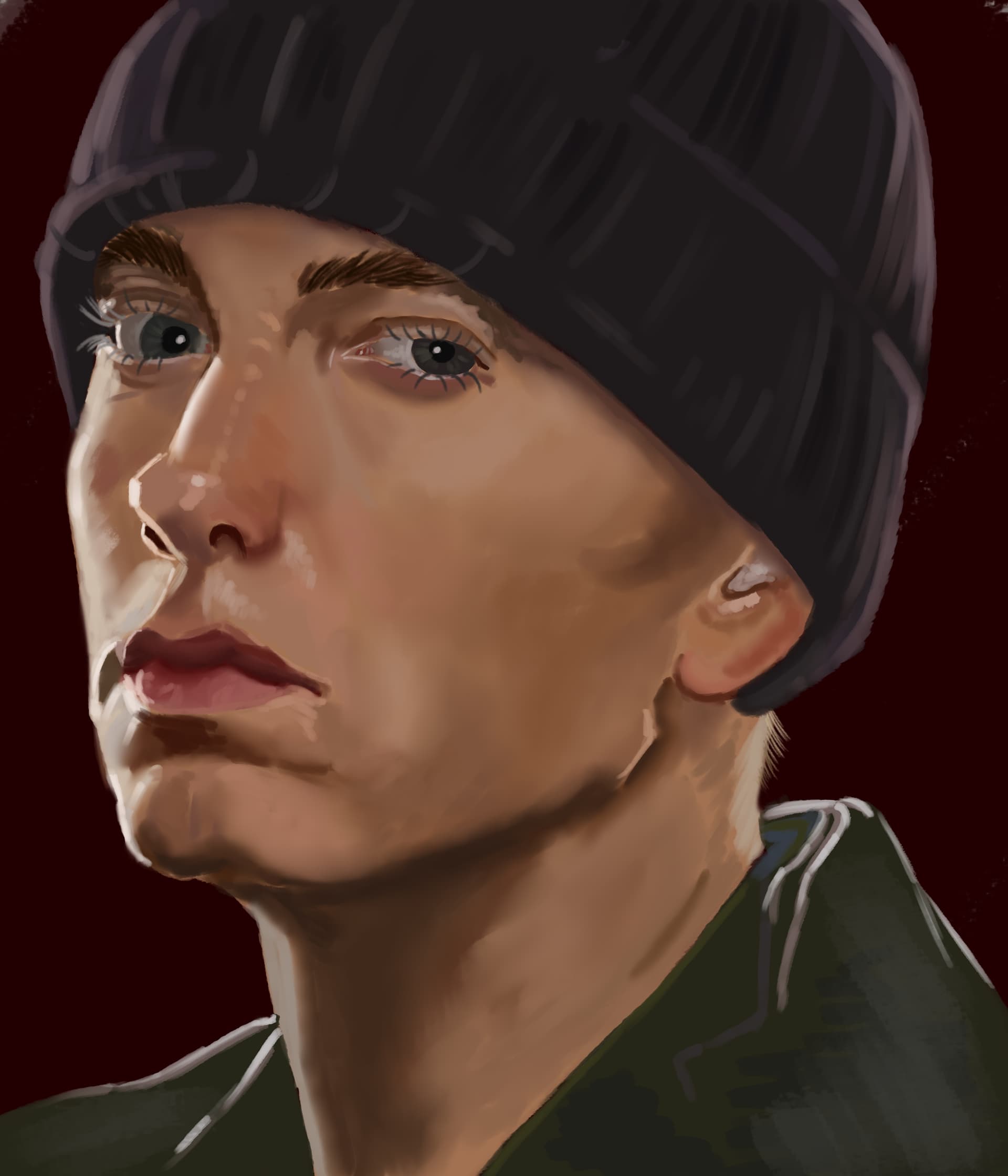 I am always struggling when it comes to painting human portraits and it is eyelashes, here is picture i did couple weeks ago. I know that for males you dont need luscious eyelashes but these i painted look horrible. Can someone help me, at least show how it would look better.