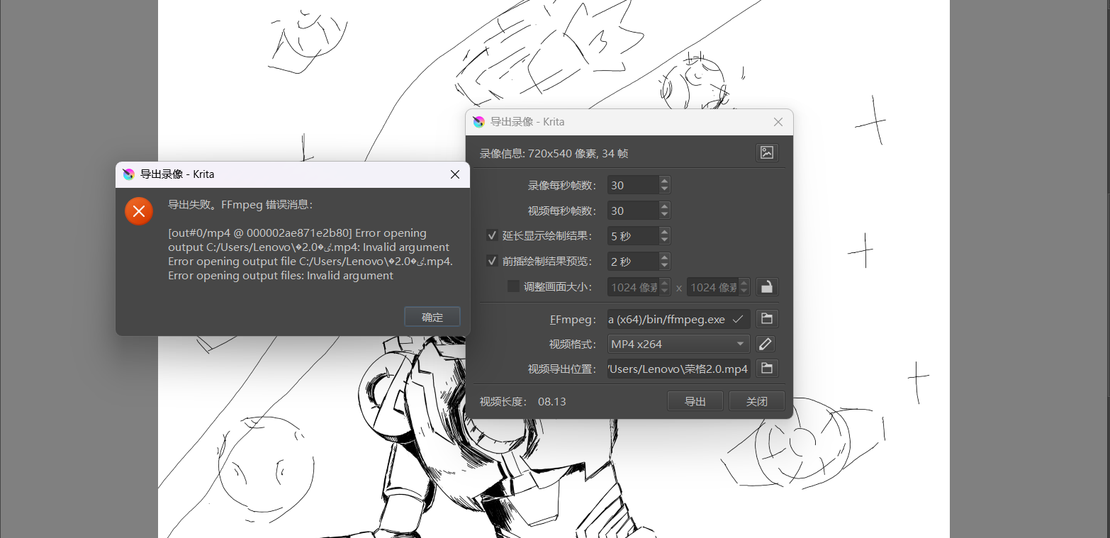 To avoid other strange ffmpeg issues, I personally recommend downloading a ffmpeg link to krita for use ![]()